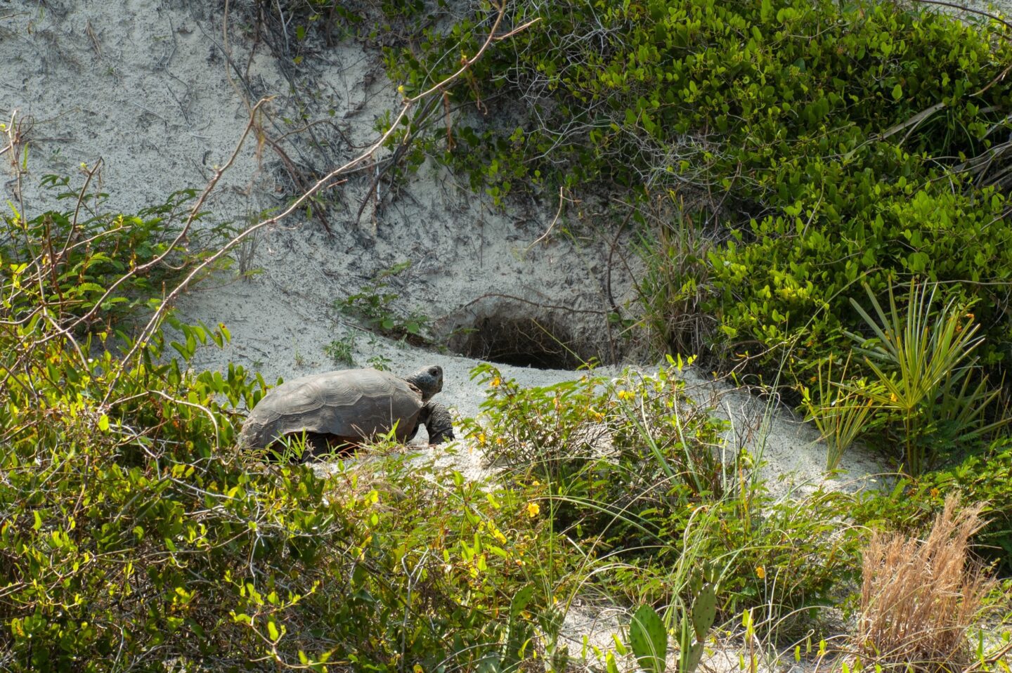 These burrows provide the tortoise with refuge, but more importantly, they offer shelter to more than 350 other species, including frogs, snakes, mice, beetles, and birds.