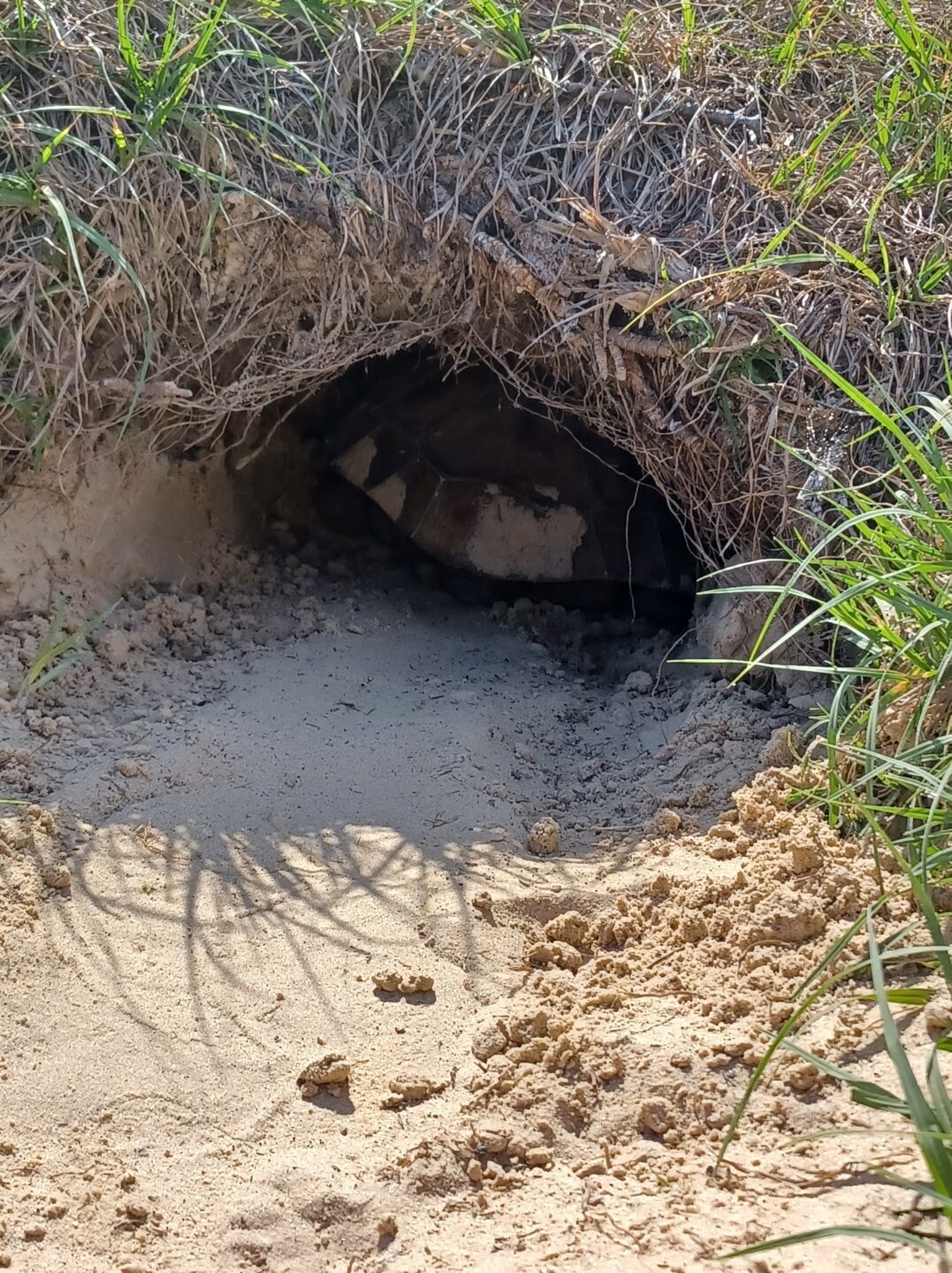 Gopher tortoise burrows inspire us to think differently about community resilience and refuge in times of crisis. Their fire-resistant tunnels suggest ways that human infrastructure might incorporate shared, thermally buffered, and distributed shelters that can serve multiple users in emergencies––whether wildfires, heatwaves, or storms. Just as the tortoise unintentionally becomes a host for other life, we can design neighborhoods and cities that offer collective protection in the face of natural threats. By emulating this humble digger’s instinct for building safety into the land itself, we might learn how to shape places of refuge not only for ourselves, but for the many lives that move among us.