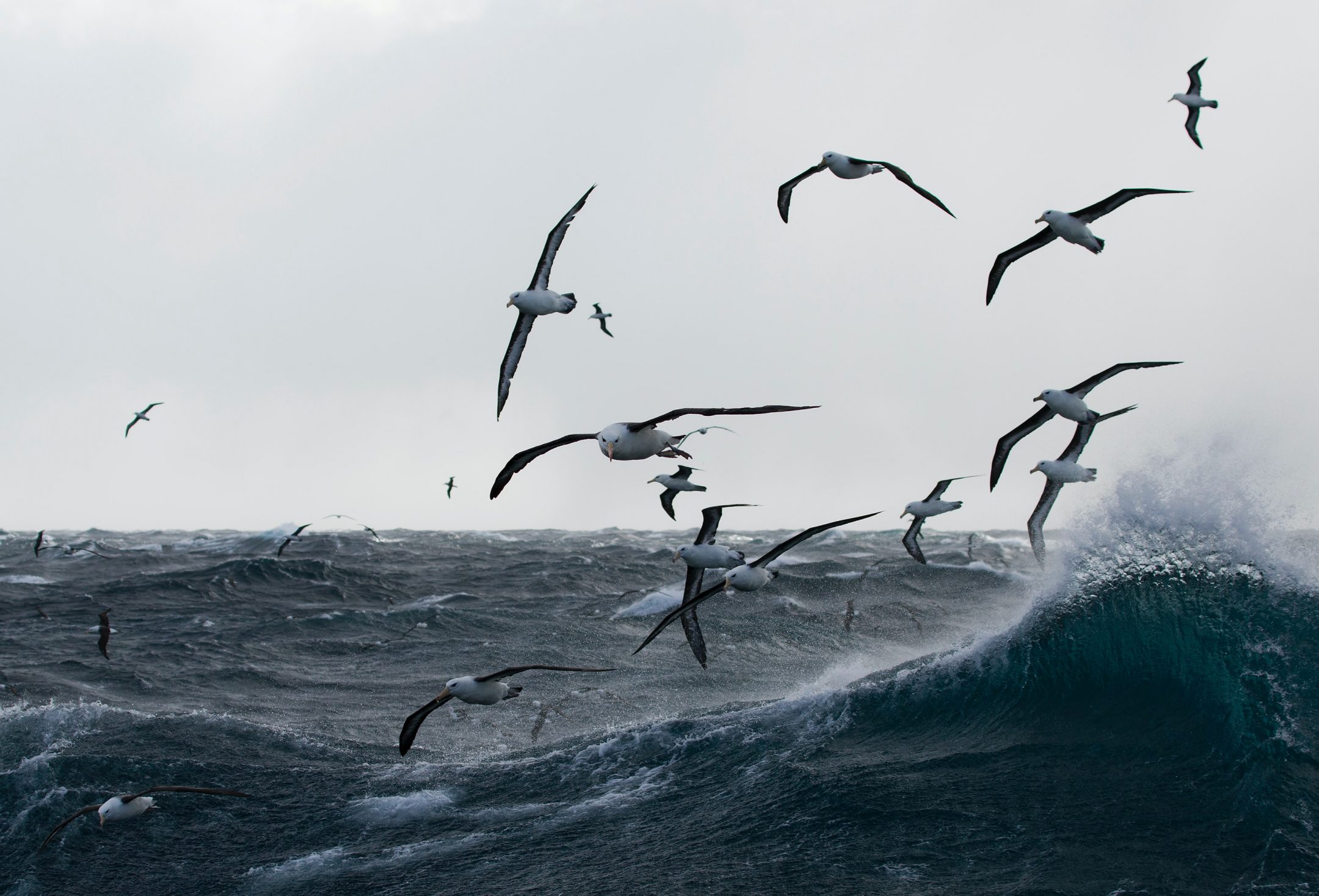 Albatross birds have long wings that help them fly quickly through the air to avoid predators and capture prey. Their wings function through a mechanical process called “transfer of momentum”, utilizing the lift of the wind to propel forward. This way, the bird is able to stay afloat without flapping its wings.