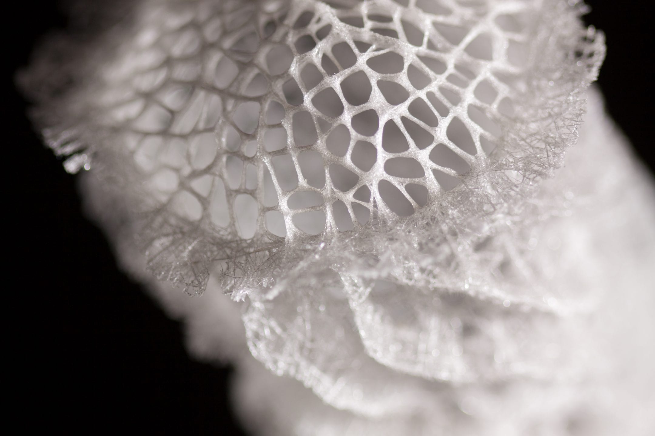 The Venus’ flower basket lives anchored to the deep ocean floor. Also known as glass sponges, their cylindrical skeletons are made out of silica, the main component of glass. The silica is arranged in concentric layers known as spicules. The spicules are arranged into a tube-shaped square lattice. Two separate but overlapping lattices make up the main frame, and because these lattices can still move relative to one another, the skeleton can be flexible while it’s growing. The squares of the lattice are reinforced by struts that run vertically, horizontally, and diagonally. These struts are made of bundles of spicules and further support the lattices against bending, sliding, and twisting forces.